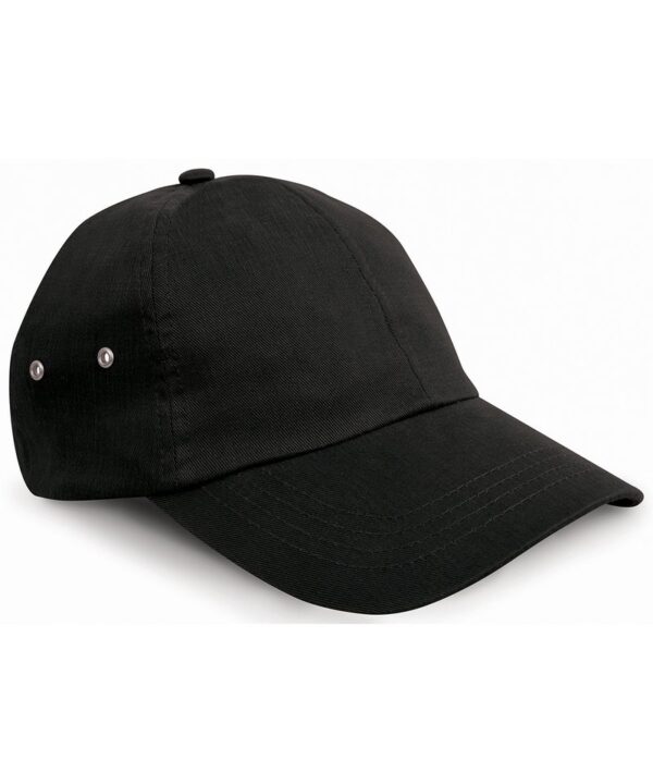 6 panel. Low profile. Pre-curved peak with 4 stitch lines. Aluminium coloured eyelets. Fabric size adjuster with brushed metal buckle.Decoration Guidelines:Decorating methods: Embroidery. Decorators access point: Open.